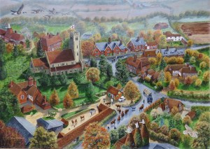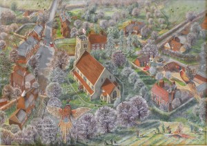 A series of six paintings, completed in 2017-18, based upon the ancient village of Salehurst in East Sussex covering each season from a bird’s-eye view. Please click on the image to view it in another window.